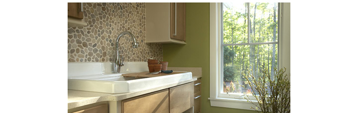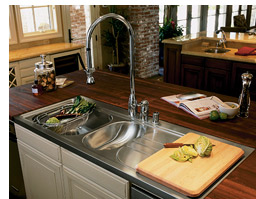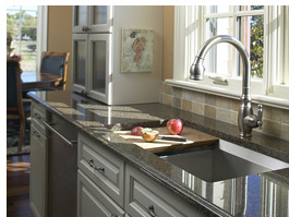 KOHLER社の豊富なカラーデザインで、あなただけのキッチン造りをお楽しみ下さい。 カウンターを天然大理石・人工大理石・おしゃれなタイル貼り! KOHLER社のスタイリッシュなシンクは、カラー・デザイン・サイズも豊富、水栓金具も選べ オリジナルなキッチンをプラン致します。