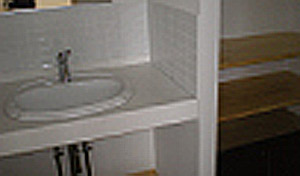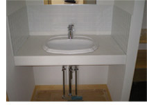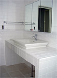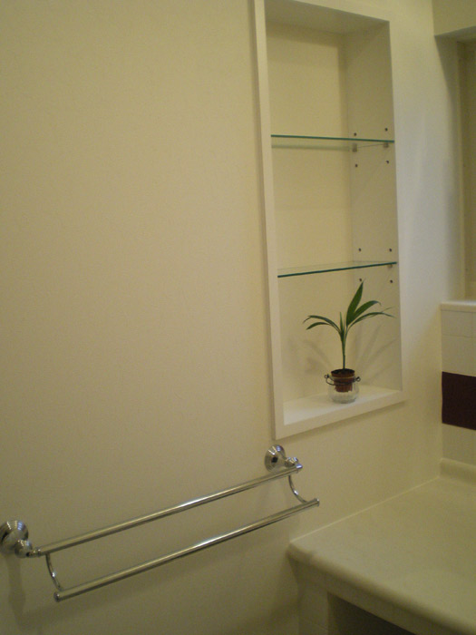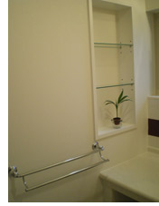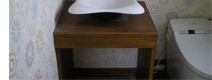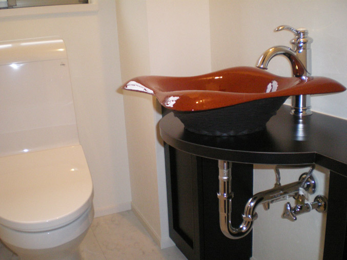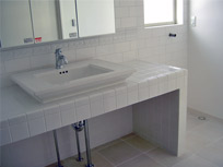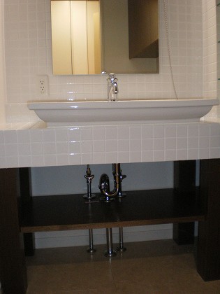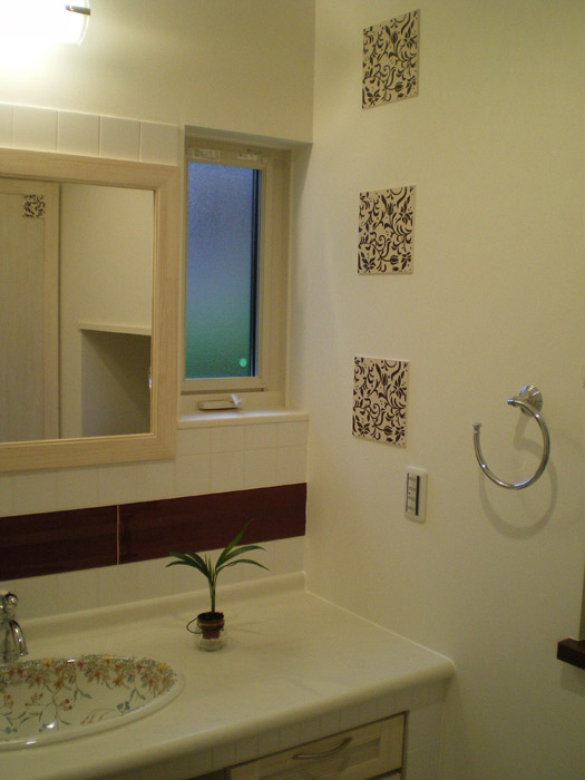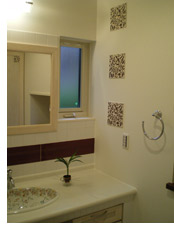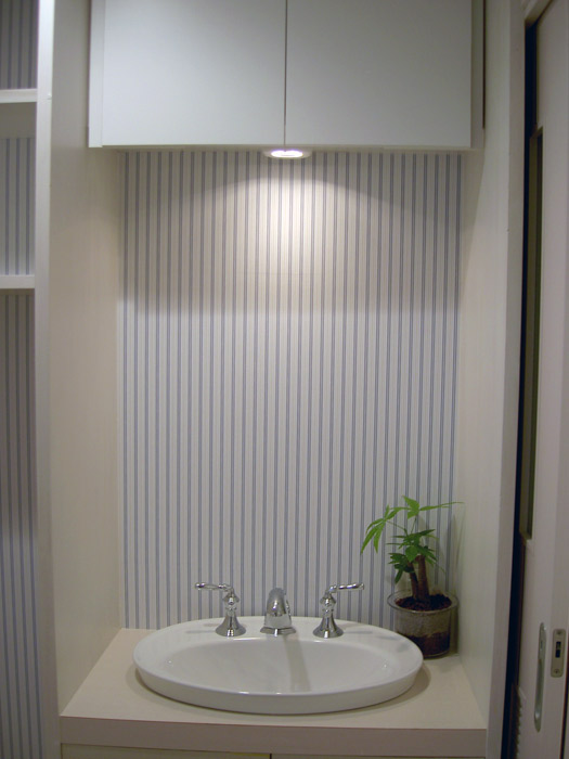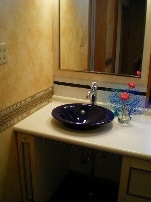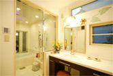 パウダールームバスルームにはリゾートホテルの雰囲気が欲しいというお客様のご要望。