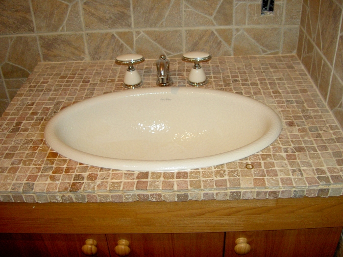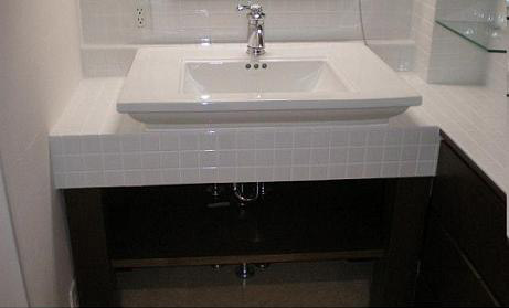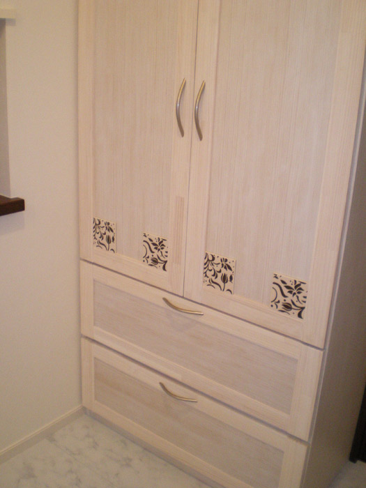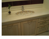 オーダー家具にモザイクタイルがコーディネ-トされ、