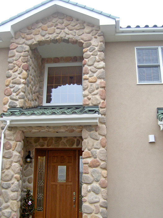 真っ白なタイル壁と本物の天然石が醸し出す高級感が