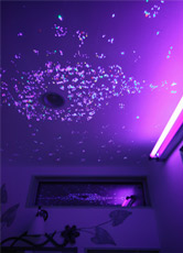 蛍光石をちりばめた天井は窓から外まで銀河が拡がります。