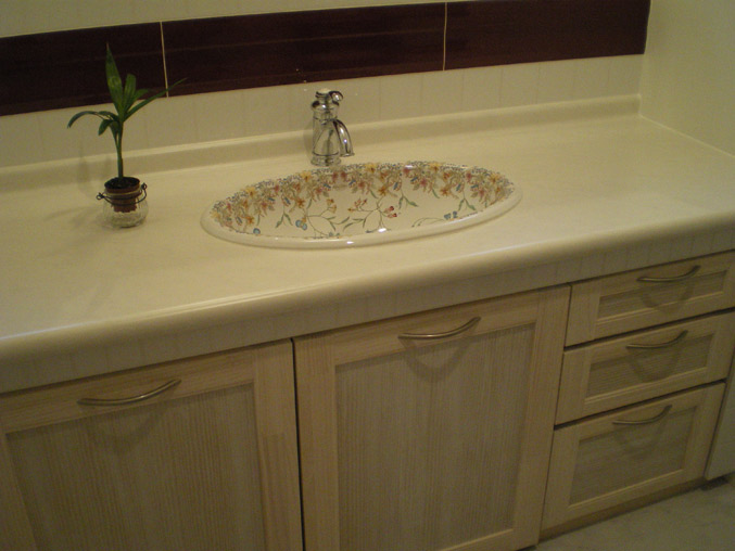 ・オリジナルデザインの大理石とタイルの、コンビのランドリーカウンター。