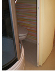 レモンイエローのアコーディオンカーテンが作っている空間(シャワー&トイレ)