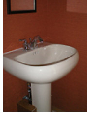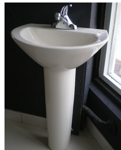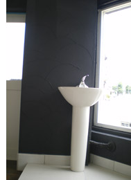 黒の壁に、白のPedestal Lavatoryを使用してスッキリした雰囲気を作っています。