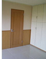 *リビング奥の部屋も間仕切りをし、壁面の広い収納も白でスッキリ。